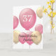 Carte personnalisée rose et or 37ème anniversaire pour elle, qui comporte des ballons roses et or sur le devant de cette carte de trente-septième anniversaire.