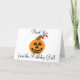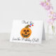 Citrouille souriant d'Halloween mignon avec ballons colorés est parfait pour envoyer des cartes de Merci Anniversaire pour la première fille d'anniversaire, ou N'IMPORTE QUEL âge de naissanceLaisser le message à l'intérieur de la carte de voeux ou personnalisez avec votre propre. Consultez mon magasin pour obtenir les invitations pour le premier anniversaire. Oeuvres et dessins graphiques originaux © TamiraZDesigns.day !