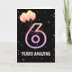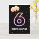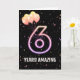 Ballons de fête et confettis sur arrière - plan noir avec le néon numéro 6 pour un 6ème anniversaire.