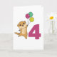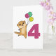 Le suricate avec des ballons pour son quatrième anniversaire. Pour chaque enfant qui fête ses quatre ans. Adorables suricates pour le 4ème anniversaire des enfants.