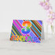La façade de cette carte de voeux d'anniversaire captivante, vibrante et passionnante comprend un motif à bandes multicolores, ainsi que le message "3 ans!" ayant un motif à dégradé multicolore inspiré de l'arc-en-ciel. L'intérieur comporte un message de salutation personnalisé, ou peut-être pourrait-il être effacé et laissé vide si un message doit être écrit à la main à la place. Une carte de voeux comme celle-ci pourrait être une façon amusante et heureuse d'envoyer un message à quelqu'un qui célèbre son troisième anniversaire. [~Z0000351]