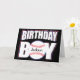 Faites votre propre carte d'anniversaire personnalisée pour les joueurs de baseball et les fans. Un design unique de BIRTHDAY BOY et une zone de texte personnalisée où vous pouvez taper le nom d'un joueur de baseball (ou tout autre texte). Ils sont parfaits pour les fêtes d'anniversaire sur le thème du baseball et les cadeaux d'anniversaire pour les joueurs de baseball.