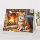 Carte Basenji Sitting by Fireplace with Christmas Lights