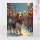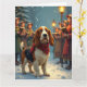 A delightful painting featuring a Basset Hound joining Christmas carolers on a snowy street. This nostalgic and festive scene brings the magic of holiday music and togetherness to life.