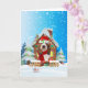 Carte Basset Hound dans la neige avec des cadeaux de Noë