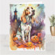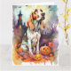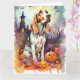 Carte Basset Hound d'Halloween avec citrouilles effrayan