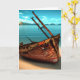 AI Généré des illustrations sur une carte vierge. Bateau rouillé abandonné en bord de mer. Eau bleue sereine dans l'arrière - plan. Un parfait mélange de beauté robuste.