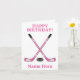 Carte bâtons de hockey rose pour l'anniversaire des filles femmes