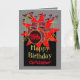 Tambour coloré avec notes musicales sur starburst rouge vif. 15e anniversaire battements de tambours de célébration. Arrière - plan de motif moderne géométrique en carreaux noir et blanc. Faites une explosion ! Bonne journée ! Joyeux quinzième anniversaire. Le nom sur l'avant et tout le texte intérieur peuvent être personnalisés à l'aide du modèle fourni. Amusez-vous avec cette carte d'anniversaire à thème musical pour un garçon ado spécial dans votre vie. Design original par Anura Design studio.