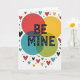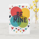 This Valentine’s Day card is a bright and joyful way to share a loving message. At the center, the words “BE MINE” stand out clearly, formed from tiny heart shapes in shades of red, yellow, teal, and pink. Behind the message are four large overlapping circles in bold red, sunny yellow, deep teal, and fresh green, all set against a white background. The circles have visible brushstroke textures that give the card a hand-painted feel. Smaller hearts in matching colors float around the design, adding warmth and movement. The mix of strong colors, soft textures, and heartfelt details creates a cheerful card that beautifully expresses love and affection.