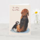 Ce mignon beagle chiot qui se mange à sa mère est si attachant, le regard dans les yeux des chiots est irrésistible, il a tellement confiance et amour pour sa mère. J’ai intitulé le tableau "I Love You Mom" parce que je suis sûr que c’est ce que le petit chiot dit à sa mère qui fait des points. Cette adorable peinture de beagle de chiot a l'air super sur cette carte de voeux de maman et je suis sûr qu'elle apportera un sourire au visage de n'importe quelle maman, surtout si elle aime les jolies photos d'animaux. Cette carte de voeux originale est un envoi pour les jours spéciaux tels que la Fête des mères, Anniversaire des mamans ect. Mais il n'est pas nécessaire que ce soit une occasion spéciale pour que votre mère sache à quel point vous vous souciez, peut-être que vous voulez juste dire "Je t'aime maman" ! Le couplet original de rimes de sentiment court à l'intérieur de la carte est simple mais significatif et convient comme un salut d'un fils ou d'une fille. C'est une carte personnalisable, vous pouvez la personnaliser avec votre propre texte. Le portrait original du chien beagle et du chiot est peint en aquarelle.