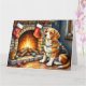 Carte Beagle Sitting by Fireplace with Christmas Lights