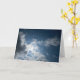 A Horizontal, 5"x7" Folded Greeting Card, with a Beautiful Picture, of the Sun, surrounded by White clouds and Blue Sky, on the front of it, = (Beautiful Sky Picture #2 by P.J.M.)