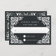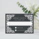 Conçu pour coordonner avec notre collection de mariages Beaux Arts, cet élégant RSVP est doté d'une bordure blanche de style picado en papel encadrant la date de réponse souhaitée et d'une formulation personnalisée d'acceptation et de déclin, sur un arrière - plan riche en charbon noir.