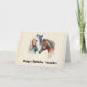 Carte d'anniversaire avec un magnifique dessin aquarelle. Avec une paire de chevaux, brun et blanc. Tête et cou visibles avec de la peinture goutte le long de la base de leur cou. L'ambiance du sud-ouest.