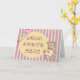 A whimsical template to announce the birth of a new baby girl: A cute girl bear, and a pink safety pin decorating the candystriped cover image, leaving a space for you to add a photo of the new family member !