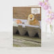 Joyeuse Fête des Prénoms bébé poussin et œufs dans un carton d'œufs en carton pour les parents de la part du premier enfant.