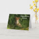 Carte d'anniversaire avec une photo montrant un mignon petit renard à fourrure rouge et blanche. Entouré de feuilles et d'herbes verdoyants.