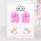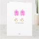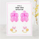 Carte bébé pour filles jumelles à nouveau-né avec des bébés jumeaux et des ballons roses.