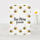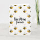 This greeting card features the sweet message “Bee Mine forever” right in the center in a flowing script style. The words are easy to read and stand out against a white background. All around the text, there’s a repeating pattern of cute little honeybees with yellow bodies and black stripes. Each bee has small see-through wings outlined in black, tiny antennae with round tips, and a friendly smile with pink cheeks. Some of the bees are winking, which adds a flirty, affectionate feel without being over the top. Small pink hearts are sprinkled between the bees, tying the whole design to romance and friendship ❤️