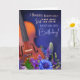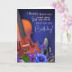A stunning BELATED birthday card featuring a warm-toned violin against a rich blue background surrounded by purple and blue flowers. The blend of wooden texture and vibrant florals creates a heartfelt, musical belated-greeting style meant to express love even when late.