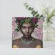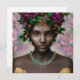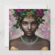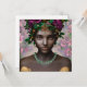 Carte vierge. L'art de l'IA représente une belle femme noire avec une couronne de fleurs violettes sur la tête. Elle ressemble à une princesse ou une reine.
