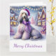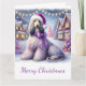 Une scène de Noël rêvée avec une belle pièce afghane dans un charmant village de Noël enneigé.