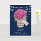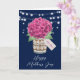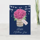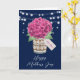 Belle carte de fête des Mères Happy à fleurs rustiques avec une hydrangée rose et un bouquet de respiration pour bébé dans un bocal de mason avec un tag personnalisé. Personnalisez facilement ce modèle pour créer une carte unique de fête des mères. Ce modèle peut être personnalisé à toute occasion.