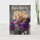 Carte de voeux fleurie à thème d'anniversaire qui présente l'image d'une belle pêche et violet, bicolore fleur d'Iris. Sélectionnez une carte de style mat ou brillant.