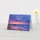Carte d'anniversaire avec une belle photo aux couleurs saisissantes de violet, bleu et rose au coucher du soleil. Un joli littoral parsemé de rochers.