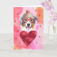 Pink Orange Australian Shepherd Valentine's Day Gift Card | Vous cherchez la meilleure façon de montrer à vos proches à quel point vous vous souciez de cette Saint-Valentin ? Regardez notre jolie carte de vacances pour chiens hilarants ! Cette adorable carte présente un chien mignon avec un casquette de fête, de grandes lunettes rouges drôles, des pattes et des coeurs rouges disant Heureuse Sainte-Valentin. Que vous l'envoyiez en cadeau à un ami ou un membre de la famille qui aime ses chiens, cette carte fait un cadeau mignon pour tous les amoureux de les chiens!