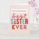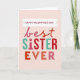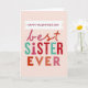 This greeting card features a blush-pink background with the message stacked neatly down the center. At the top, a small white banner reads “HAPPY VALENTINE’S DAY” in deep red letters, set in a simple, tidy style. Just below, the word “best” appears in a smooth, flowing coral writing style that feels friendly and affectionate. Under that, “SISTER EVER” is written in big capital letters, with each word split into bright teal, fuchsia, and warm orange-red tones. The letters have a light speckled texture that makes the design feel a bit worn-in and cozy, like something you’ve held onto for a while. The mix of colors and letter styles keeps the message fun while still feeling sincere. It’s a sweet way to say you notice your sister and you’re grateful for her, whether you’re close by or far apart 🥰❤️.