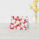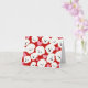 Les visages de Bichon Frise duveteux avec des cœurs roses et un fond rouge font la carte parfaite pour les amateurs de bichon (ou de chien duveteux).