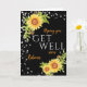 Une belle carte Get Well soon avec aquarelle tournesol jaune, feuillage et lumières à cordes sur un sol noir (couleur arrière - plan peut être modifiée si nécessaire, il suffit de cliquer sur personnaliser le bouton plus loin.) Un joli moyen joyeux d'envoyer vos pensées et obtenir des souhaits bien à un membre de la famille ou ami.Tout le texte peut être customisé puis personnalisez avec un nom et un message.