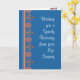 Une jolie carte Get Well Card pour quelqu'un qui a une chirurgie oculaire, avec un motif frontière de Fleurs Orange, Rose et Bleu et un motif Rangoli, d'un collage de papier peint à la main par Judy Adamson. Une partie de la collection Posh & Painterly 'Rangoli'.