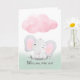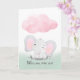 Célébrez l'arrivée d'une adorable petite fille avec cette douce carte aquarelle représentant un éléphant attendrissant aux oreilles rose pâle. Assis paisiblement sous un ciel pastel doux, ce petit éléphant capture parfaitement la joie de l'arrivée d'un nouveau membre de la famille. Un nuage rose pâle offre un espace pour personnaliser avec le nom du bébé, faisant de cette carte un souvenir vraiment spécial. Avec un message sincère à l'intérieur, c'est le moyen idéal pour partager votre amour et vos félicitations avec les nouveaux parents.