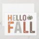 Ce design sur le thème de l'automne accueille chaleureusement la saison automnale avec la phrase "Hello Fall". Les mots sont disposés dans une mise en page simple mais visuellement attrayante, avec "Hello" placé au-dessus de "Fall". Chaque lettre de la phrase est présentée dans une police en gras et en bloc avec une texture légèrement dégradée, lui donnant un aspect rustique et patiné qui complète le thème automnal.