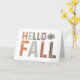 Ce design sur le thème de l'automne accueille chaleureusement la saison automnale avec la phrase "Hello Fall". Les mots sont disposés dans une mise en page simple mais visuellement attrayante, avec "Hello" placé au-dessus de "Fall". Chaque lettre de la phrase est présentée dans une police grasse et block avec une texture légèrement dégradée, lui donnant un aspect rustique et patiné qui complète le thème automnal.