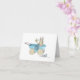 Un lapin en peluche est assis dans un chariot à bébé à l'ancienne tenant une roue à pinces. Féliciter quelqu'un d'autre ou annoncer la naissance, l'adoption ou le baptême de votre propre petit. L'intérieur est vide pour votre propre message. Cela se présente en trois versions, avec un chariot rose, bleu ou vert doux. Aussi présent - une petite souris grise.