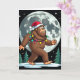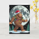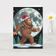Éclairez les vacances de quelqu'un avec une carte de voeux de Noël charmante avec un joli dessin animé Bigfoot orné d'un chapeau de Père Noël rouge festif 🎅 🏼. Cette adorable créature marche devant une lune grise géante enveloppée de lumières de Noël multicolores 🌕 🎄. Avec sa fourrure brune, ses pieds nus et son expression joyeuse, ce Bigfoot vous apportera un sourire au visage de quiconque. Le texte de la carte est placé de façon sidérale contre l'arrière - plan noir avec des silhouettes d'arbres à feuillage persistant en bas. Diffusez un peu de joie de vacances avec cette carte parfaite qui capture la magie de la saison! 🎁