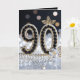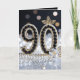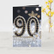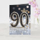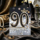 Célébrez un anniversaire de quatre-vingt-dix ans avec ce design luxueux et glamour, parfait pour la femme qui brille. Le devant présente le nombre "90" élaboré à partir de fausses pierres précieuses noires et bordé de perles blanches classiques. Accentué de détails en feuilles d'or, d'une rose en cristal et d'un fond bokeh argent et noir scintillant, ce design dégage de la sophistication.