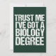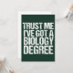 Faites-moi confiance J'ai un diplôme en biologie. Une carte d'humour de diplôme pour un bio-enseignant ou un professeur amusant après avoir obtenu un diplôme de collège ou d'université avec un diplôme d'enseignement. Un biologiste cool a conçu des devis.