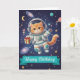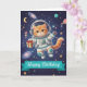 `Send out-of-this-world birthday wishes with this adorable Cat Astronaut greeting card! Featuring a charming ginger cat in a detailed spacesuit floating among colorful planets, twinkling stars, and swirling galaxies, this 5x7 card is perfect for any feline lover with big dreams