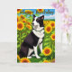 This colorful greeting will cheer the recipient. Dog and sunflower.