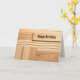 Geometric wooden panels are arranged against a textured sand backdrop, creating a visually interesting contrast between the smooth wood grain and the fine sand.