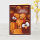 Illustration graphique d'un correctif citrouille avec des coqs sur une carte de voeux d'anniversaire. La carte comporte un verset et des modèles de texte personnalisables pour votre personnalisation. OEuvre originale : Copyright Charmaine Paulson