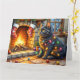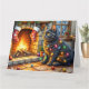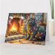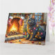 Carte Black Cat Sitting Fireplace with Christmas Lights