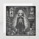 Temática navideña con chica gótica rodeada de decoración navideña. Ilustración anime gris con efectivo envejecido en enmarcado ovalado.