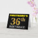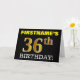 Ce design de carte de voeux d’anniversaire comporte un message comme "FIRSTNAME’S 36th BIRTHDAY!", avec le "36th" ayant une apparence de couleur fausse/imitation or. Le nom du destinataire sur le devant peut être personnalisé, et l’arrière - plan avant est de couleur noire. Il comporte également un message d'anniversaire personnalisé à l'intérieur. Une carte de voeux comme celle-ci pourrait peut-être être remise à quelqu'un pour célébrer son trente-sixième anniversaire. [~Z0000183]
