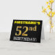 Ce design de carte de voeux d’anniversaire comporte un message comme "FIRSTNAME’S 52nd BIRTHDAY!", avec le "52nd" ayant une apparence de couleur fausse/imitation or. Le nom du destinataire sur le devant peut être personnalisé, et l’arrière - plan avant est de couleur noire. Il comporte également un message d'anniversaire personnalisé à l'intérieur. Une carte de voeux comme celle-ci pourrait peut-être être remise à quelqu'un pour célébrer son cinquante-deuxième anniversaire. [~Z0000183]